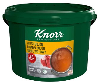 Zloženie v dehydrovanom stave: jedlá soľ, maltodextrín, rastlinný tuk a olej (palmový, slnečnicový), kvasničný extrakt, arómy (obsahujú MLIEKO), cukor, hovädzí extrakt 2,3%, cibuľová šťava koncentrovaná, regulátory kyslosti (octany sodné, mliečnan vápenatý, kyselina citrónová, kyselina mliečna), zelenina (ZELER, cesnak). Môže obsahovať vajcia, glutén.